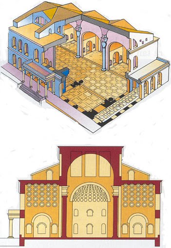 Era posible que la gente se reuniera dentro gracias a que los romanos cogieron el arco y la bóvedas de los etruscos. Estos soportaban mejor los pesos y no hacía falta que pusieran dentro tantas columnas como en el arte anterior.